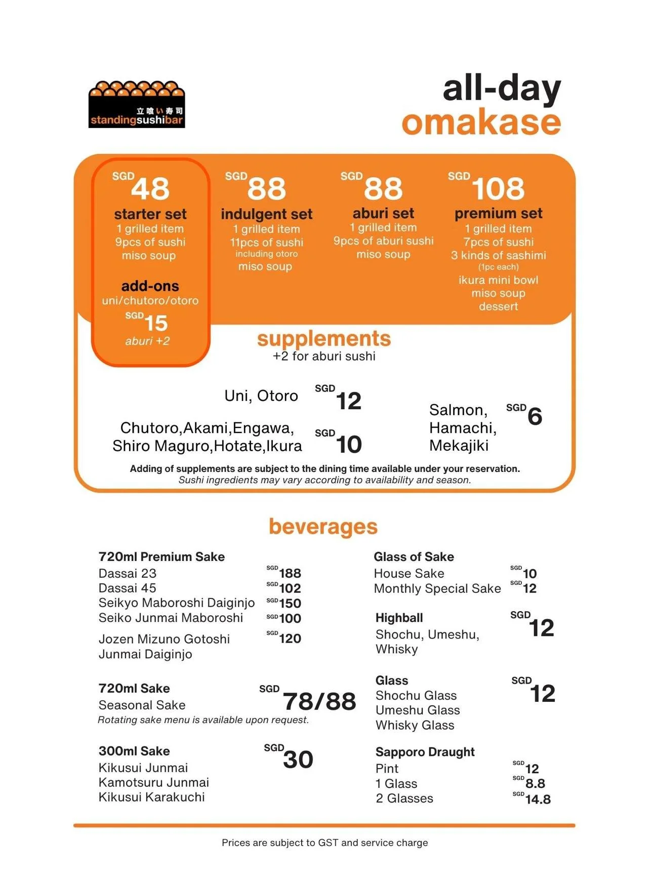Omakase from Standing Sushi Bar - starting from 48 SGD